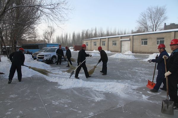 14日一大早,公司機關(guān)及各基層廠隊干部職工都積極投身到掃雪行動中。雖然室外氣溫很低,許多人的手和臉也被凍得通紅,然而,這一切絲毫沒有影響大家的勞動熱情和效率。職工們團結(jié)協(xié)作、井然有序,揮舞著鐵鍬和笤帚,鏟的鏟、掃的掃,干得熱火朝天,形成了一道美麗的風景線!經(jīng)過大家一個多小時的努力,各廠區(qū)出入口、主干道等處積雪被全部鏟除、掃凈,確保了行車道路通暢,為公司安全生產(chǎn)和職工出行掃除了障礙。