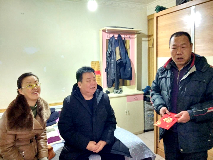 本報訊 記者王昆報道 新春佳節(jié)即將到來之際,2月8日,帶著新春的祝福和組織的關(guān)懷,董繼鋼、王建云、孫云生等公司領(lǐng)導分別帶領(lǐng)11個慰問小組,深入公司困難職工家中進行了走訪慰問,并為他們送去了慰問金和慰問品,在寒冷的冬天送去了“鋼興大家庭”的溫暖。